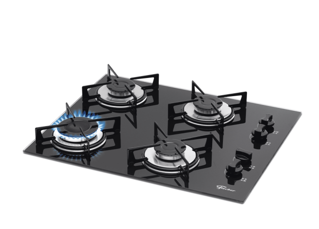 Cooktop a Gás Fischer 4 Bocas Fit Line Mesa Vidro Bivolt